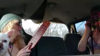 امرأة سمراء مغر هو وجود الثلاثي في الجزء الخلفي من السيارة مع اثنين من الرجال السود.